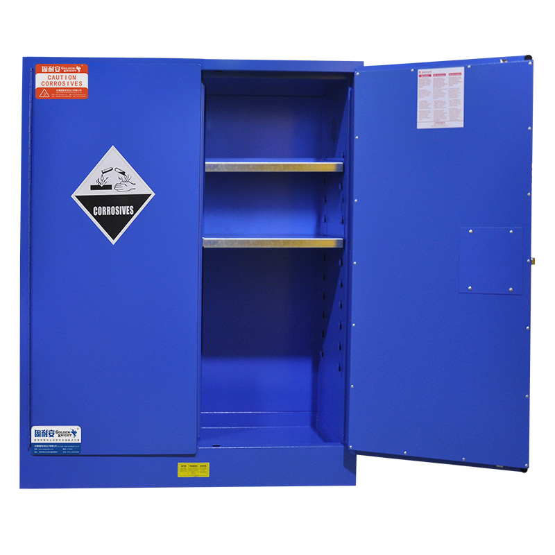產品介紹:是指容積為60加侖/227升的一種用于存放弱腐蝕性液體的藍色安全柜。